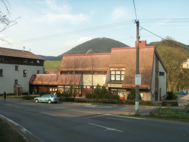 Konzum (Lebensmittelladen), im Hintergrund der Spitzberg