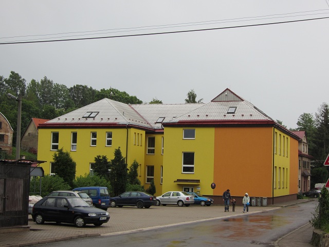 Volksschule Bernsdorf mit renovierter, isolierte Fassaade und neuen Fensterscheiben