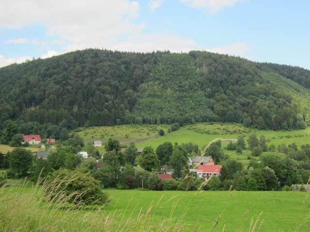 Anfahrt nach Potschendorf: im Vordergrund rechts ist die Penzion ZÁTIŠÍ zu sehen