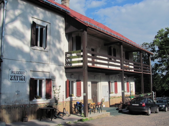 Penzion ZÁTIŠÍ (unterer Gebäudeteil, in dem bis 1945 die Volksschule untergebracht war)