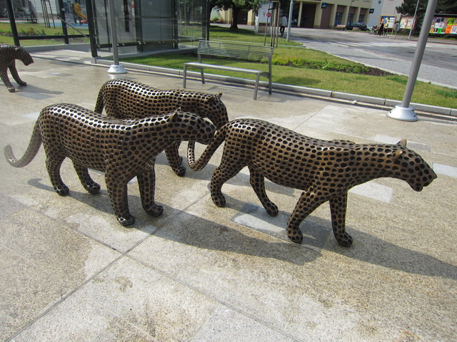 vor der neuen Veranstaltungshalle, in der sich auch ein Café befindet