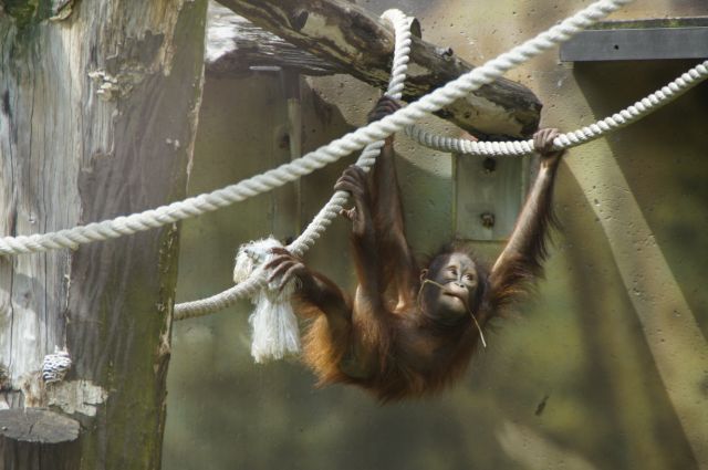 im Zoo von Königinhof: ein kletternder, junger Orang-Utan