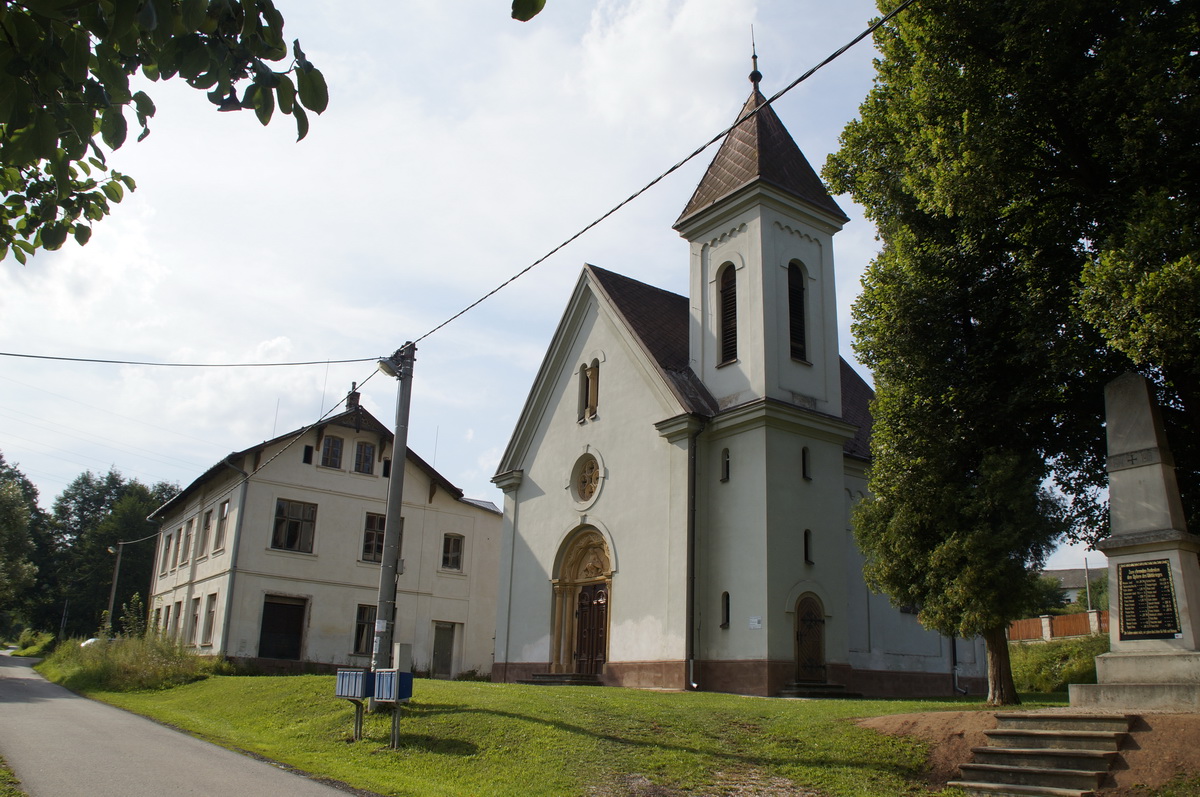 Alte Schule, Kirche und Kriegerdenkmal in Gabersdorf