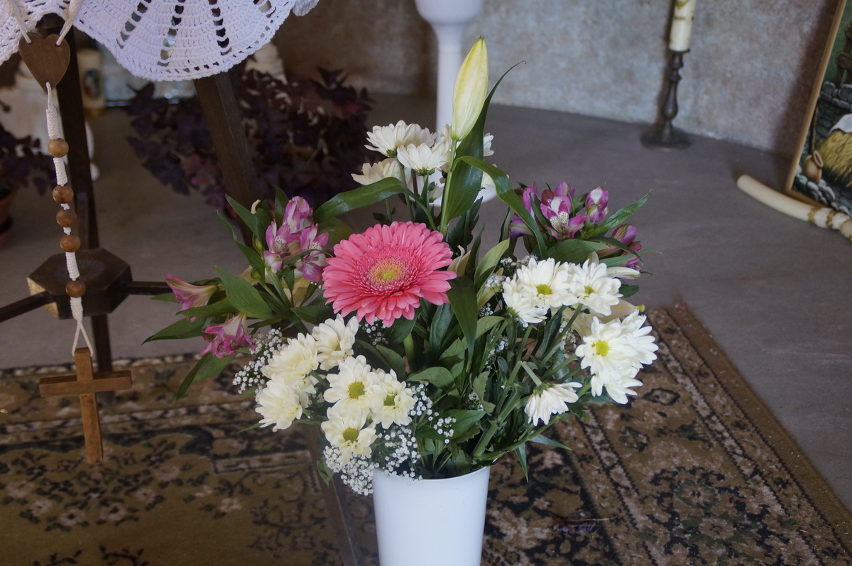 Gedenkveranstaltung in Berggraben (Blumenschuck am Altar der Maria-Hilf-Kapelle zum Totengedenken)