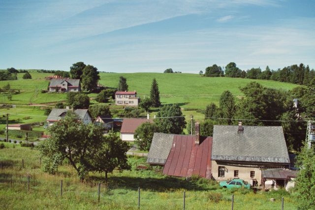 Bernsdorfer Oberdorf, im Vordergrund die frühere Bäckerei Riedel