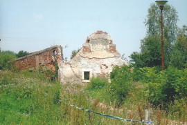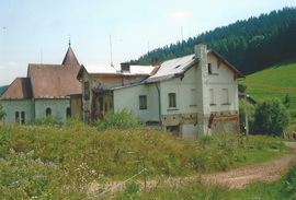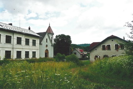 2008: Schule und Kirche, rechts das Gasthaus "Kuhn", dass auf einem Bild weiter unten so zerstört wurde