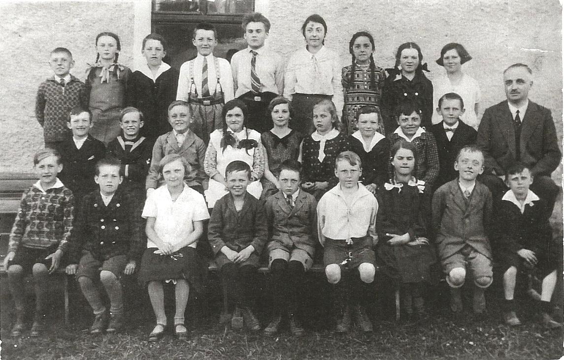 Schüllerinnen und Schüler der Krinsdorfer Volksschule mit Oberlehrer Richard Hilbert. Das Bild stamm ungefähr aus dem Jahr 1930 und wurde mir dankenswerterweise von Frank - Reiner Reihs zur Verfügung gestellt.