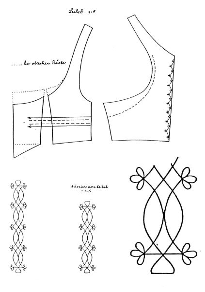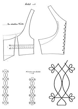 laut Muster. Hals und Armausschnitt sowie Brustband